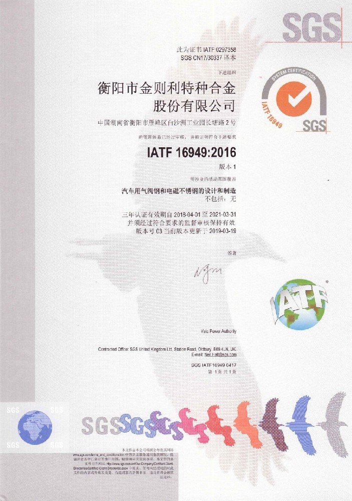 IATF 16949管理體系證書 |